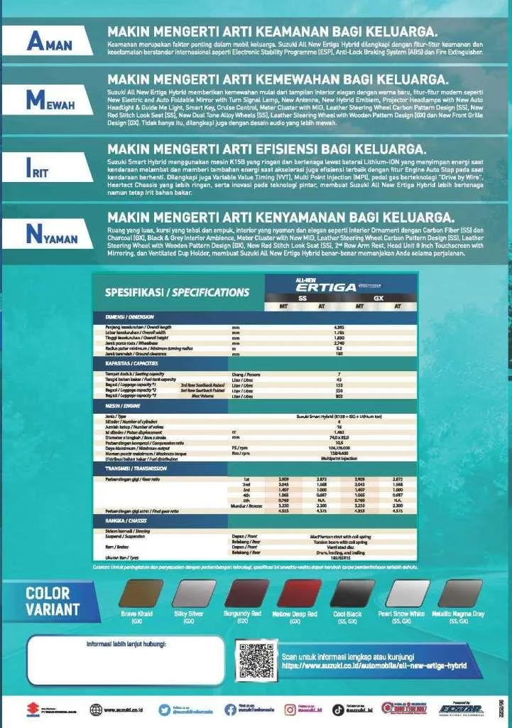 Suzuki All New Ertiga Hybrid, mobil pintar yang didukung oleh teknologi Suzuki Smart Hybrid #UntukHariYangLebihBaik sebagai LMPV dengan teknologi smart hybrid pertama di Indonesia.. Mengkombinasikan teknologi modern dan fitur yang canggih, hadir dengan 17 ubahan baru yang membuat Ertiga Hybrid menjadi LMPV Hybrid pertama di Indonesia.